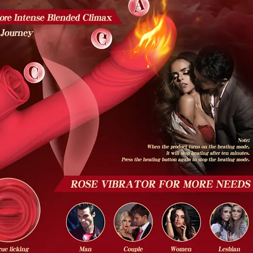 - Independent control+ soft silicone: Considering user needs, our rose sex stimulator for women has different independent motor. The first button controls the retractable, the middle button controls the tongue licking vibration, the bottom button to control heating, you can use one separately, or simultaneous use depends on your love. Female vibrator rose is made of soft skin, safe and comfortable silicone,it can be hit any point you want.